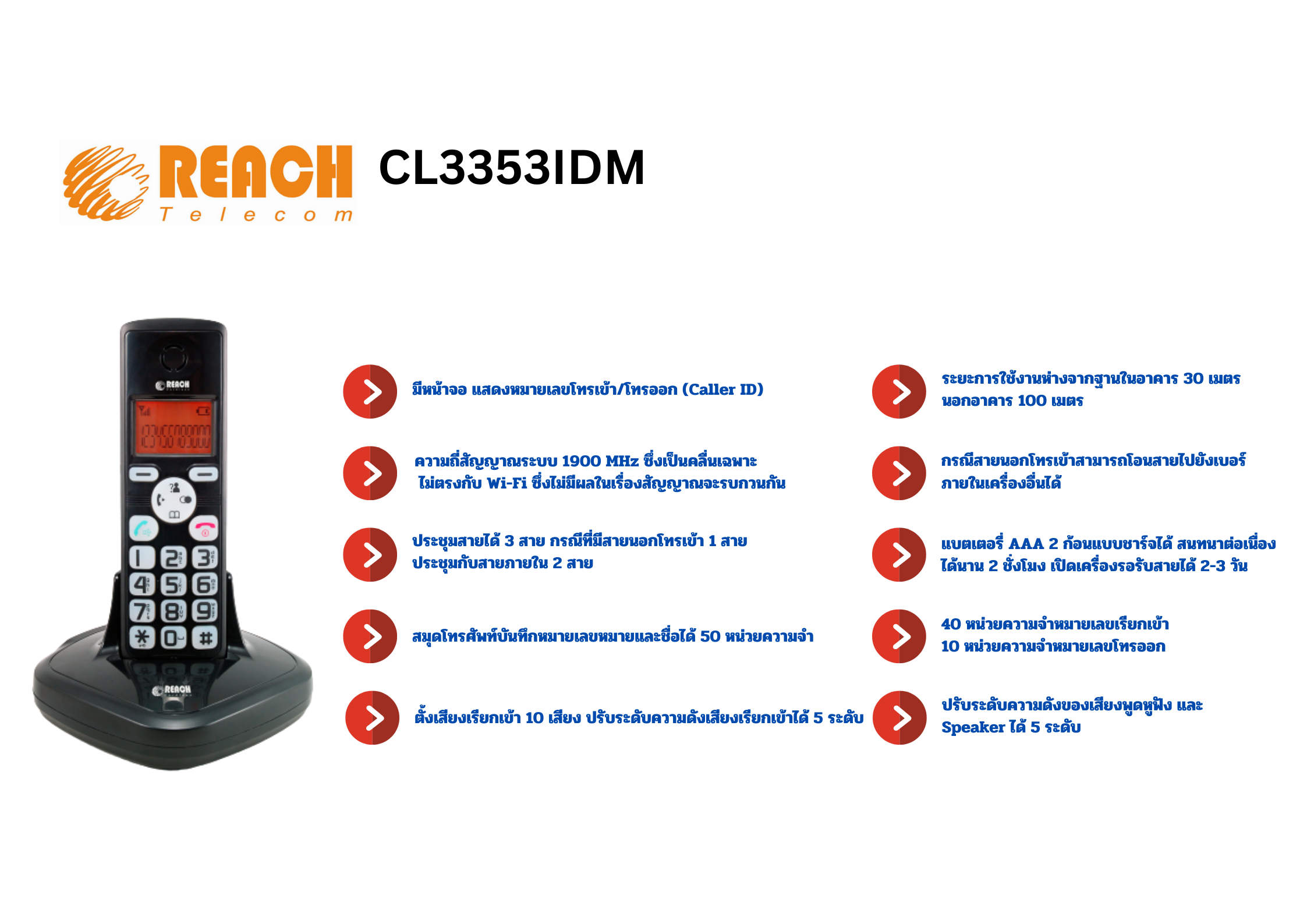 • รองรับการใช้ตัวฐานได้ 4 เครื่อง ต้องเปิดใช้บริการเสริมกับผู้ให้บริการหมายเลข เมื่อใช้ตัวมือถือมากกว่า 1 เครื่อง