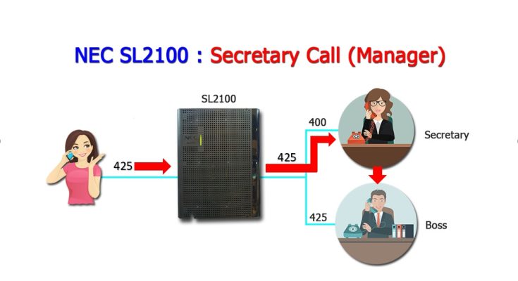 วันนี้เราจะมาแนะนำ Feature ของ NEC SL2100 สำหรับ สำนักงานที่มีผู้จัดการ(Boss) และมีเลขา(Secretary) ทำหน้าที่รับเรื่องทุกเรื่องก่อนนำเสนอผู้จัดการ(Boss) คือ Feature Secretary Call (Manager) เมื่อเราตั้งค่า Feature เสร็จแล้วถ้ามีสายเรียกมาเข้าที่ผู้จัดการ(Boss)ระบบตู้จะทำการโอนสายมายังเลขา(Secretary) เมื่อคุยรับเรื่องเรียบร้อยแล้วโอนต่อให้ผู้จัดการต่อไป สำหรับการตั้งค่า Feature ไม่ยากครับ