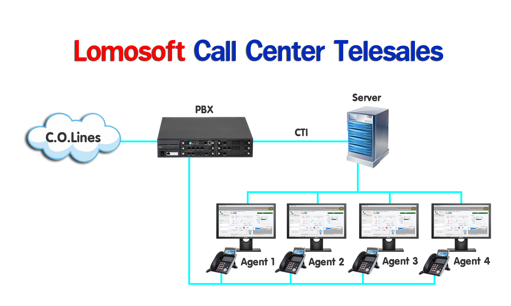 Lomasoft Call Center Telesales เป็น Software ระบบดูแลการขายสินค้าทางโทรศัพท์ ที่จะช่วยอำนวยความสะดวกให้นักขาย ทำงานได้อย่างรวดเร็ว และถูกต้อง เมื่อกรอกข้อมูลลูกค้า หรือ การสั่งซื้อ ระบบจะทำการเก็บข้อมูลลูกค้าลงบน Server ไม่ว่าจะเป็น ชื่อ ที่อยู่ เบอร์โทร ประวัติการซื้อสินค้า ลักษณะสินค้าที่ซื้อ รวมถึงวิธีการจัดส่ง อีกทั้งยังคำนวณยอดการสั่งซื้อ ตลอดจนพิมพ์ใบส่งของ และ ยอดสั่งซื้อ ทำให้สะดวกสบายในการเก็บข้อมูลการสั่งซื้อทุกครั้ง สามารถเรียกดูข้อมูลย้อนหลังเพื่อเช็กสินค้า หรือแก้ไขข้อมูลได้แบบง่ายๆ ทำให้ไม่พลาดทุก Order ของลูกค้าที่สั่ง Pop-Up หน้าจอแสดงรายละเอียดลูกค้าทันทีที่เสียงกระดิ่งโทรศัพท์ดัง ทำให้พนักงานรับโทรศัพท์รู้ข้อมูลของลูกค้าที่โทรเข้า กล่าวคำทักทาย นำเสนอสินค้าที่ลูกค้าพึงพอใจได้อย่างรวดเร็ว สร้างความประทับใจให้ลูกค้าได้ตลอดเวลา อาจเพิ่มยอดขายได้เพิ่มขึ้นอย่างคาดไม่ถึง