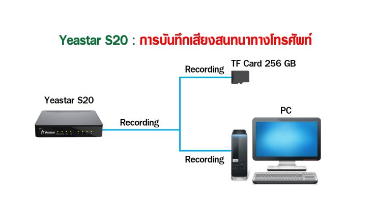 การบันทึกเสียงสนทนาทางโทรศัพท์ ภายในระบบตู้ IP PBX Yeastar S20 สามารถบันทึกลง TF Card ได้สูงสุด 256 GB ซึ่งอาจจะไม่เพียงพอสำหรับลูกค้าที่ต้องการพื้นที่มากๆในการบันทึกเสียง เพื่อจะได้บันทึกได้เป็นเวลานาน