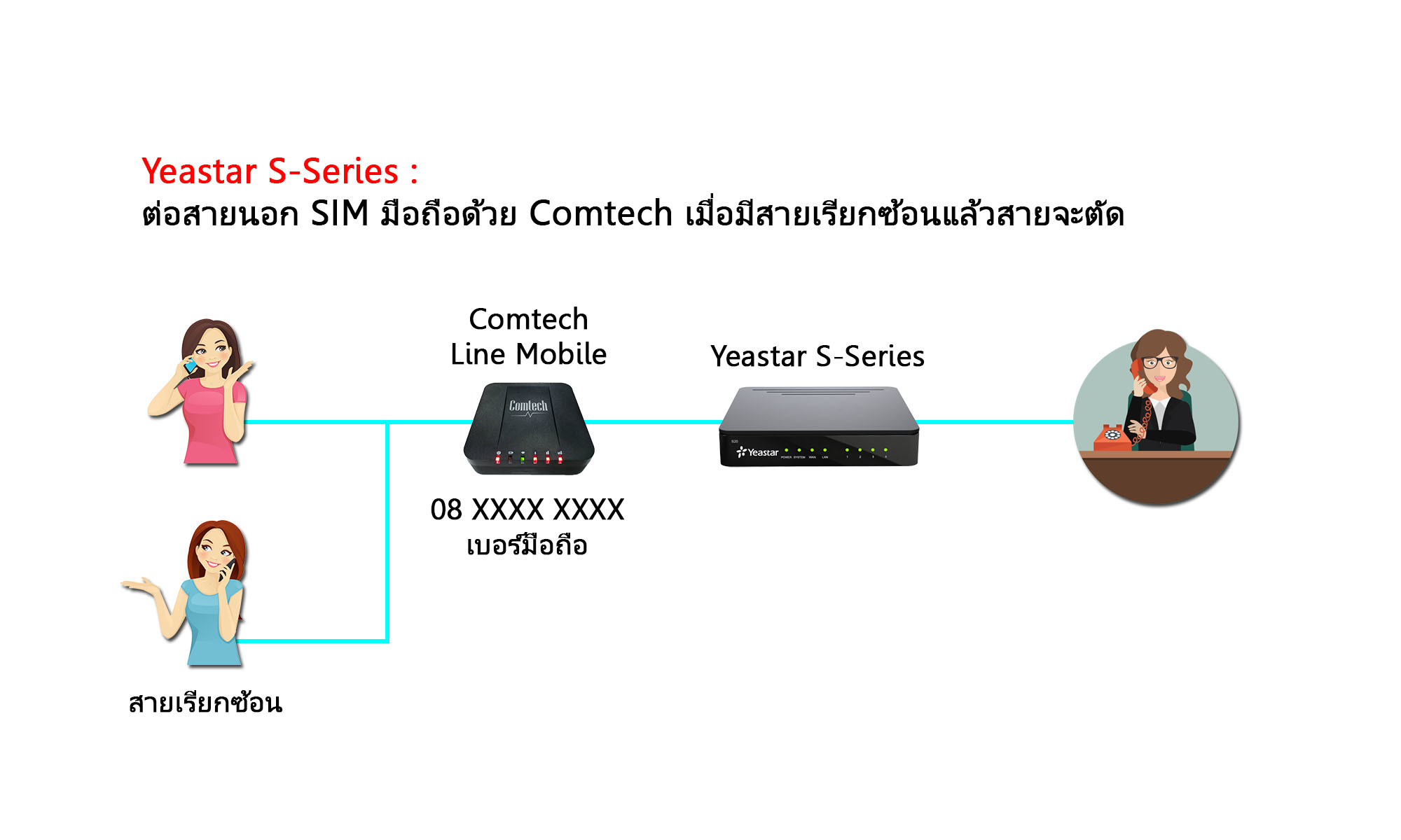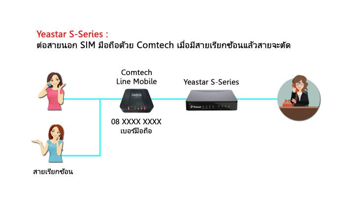3.ถอด SIM จาก Smartphone มาใส่ Comtech และต่อเข้าตู้สาขา Yeastar เหมือนเดิม