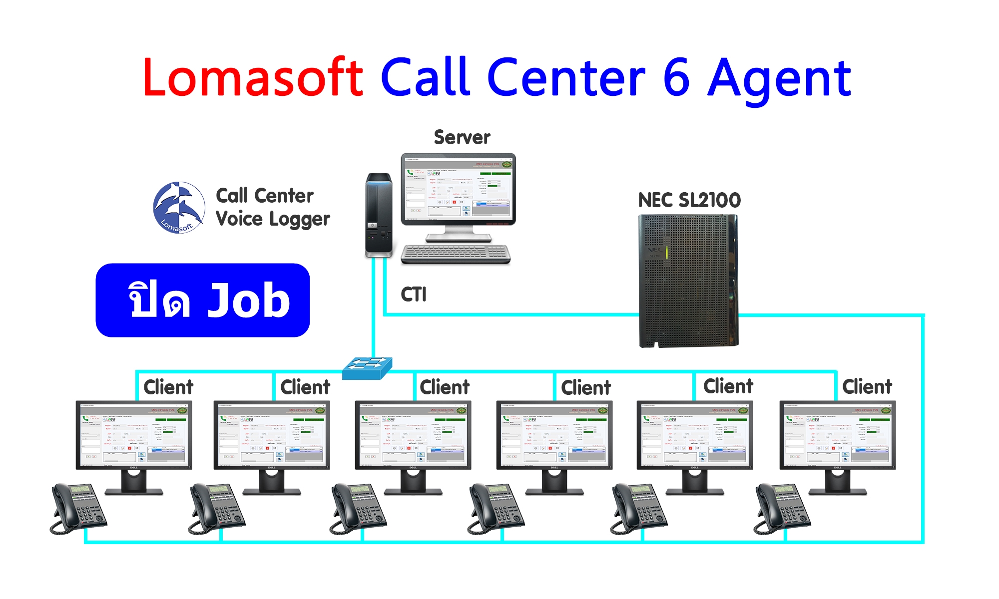 Lomasoft Call Center Solutions เป็นการผสมผสานการทำงานระหว่าง PBX และ Software Lomasoft Call Center โดยมีCTI ( Computer Telephony Integration ) เป็นตัวกลางในการส่งข้อมูลสถานะการใช้งานพร้อมCaller ID ให้ Software Lomasoft Call Center Pop-up ข้อมูลโทรศัพท์และข้อมูลลูกค้าในกรณีที่มีการบันทึกในระบบ ทั้งนี้ในกรณีที่ไม่มีข้อมูล ระบบจะทำการส่งเบอร์โทรศัพท์และขณะสนทนาสามารถบันทึกข้อมูลลูกค้าลงในระบบได้ทันที ไม่ว่าจะเป็นชื่อที่อยู่ , บันทึกการสนทนา ฯ นอกจากนี้ยังมี Options เสริมคือ TVRS ( Telephone Voice Recorder Systems ) บักทึกเสียงสนทนาทางโทรศัพท์เพื่อนำข้อมูลเสียงมาปรับปรุงการให้บริการอีกด้วย