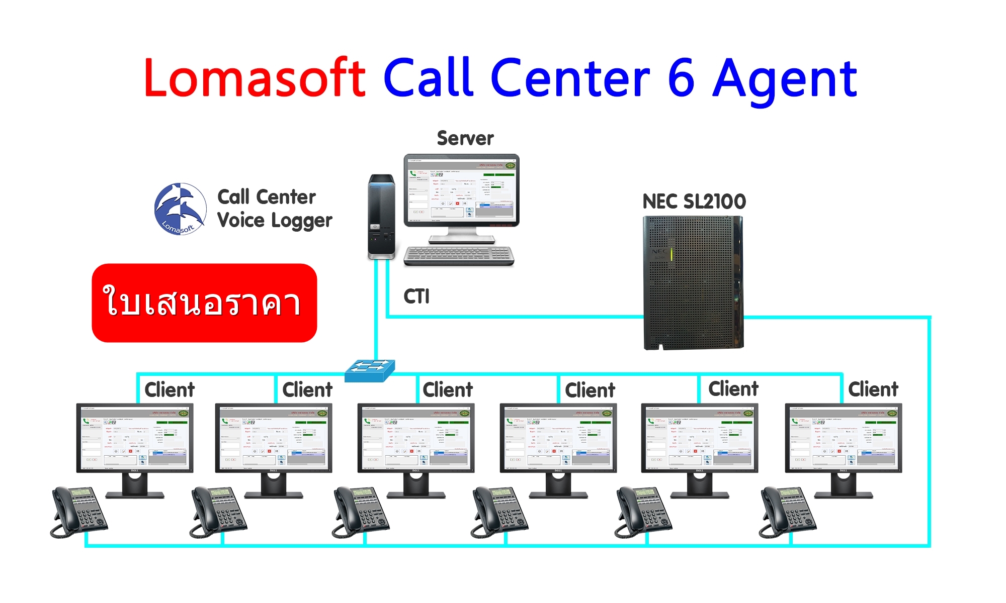 Lomasoft Call Center Solutions เป็นการผสมผสานการทำงานระหว่าง PBX และ Software Lomasoft Call Center โดยมีCTI ( Computer Telephony Integration ) เป็นตัวกลางในการส่งข้อมูลสถานะการใช้งานพร้อมCaller ID ให้ Software Lomasoft Call Center Pop-up ข้อมูลโทรศัพท์และข้อมูลลูกค้าในกรณีที่มีการบันทึกในระบบ ทั้งนี้ในกรณีที่ไม่มีข้อมูล ระบบจะทำการส่งเบอร์โทรศัพท์และขณะสนทนาสามารถบันทึกข้อมูลลูกค้าลงในระบบได้ทันที ไม่ว่าจะเป็นชื่อที่อยู่ , บันทึกการสนทนา ฯ นอกจากนี้ยังมี Options เสริมคือ TVRS ( Telephone Voice Recorder Systems ) บักทึกเสียงสนทนาทางโทรศัพท์เพื่อนำข้อมูลเสียงมาปรับปรุงการให้บริการอีกด้วย
