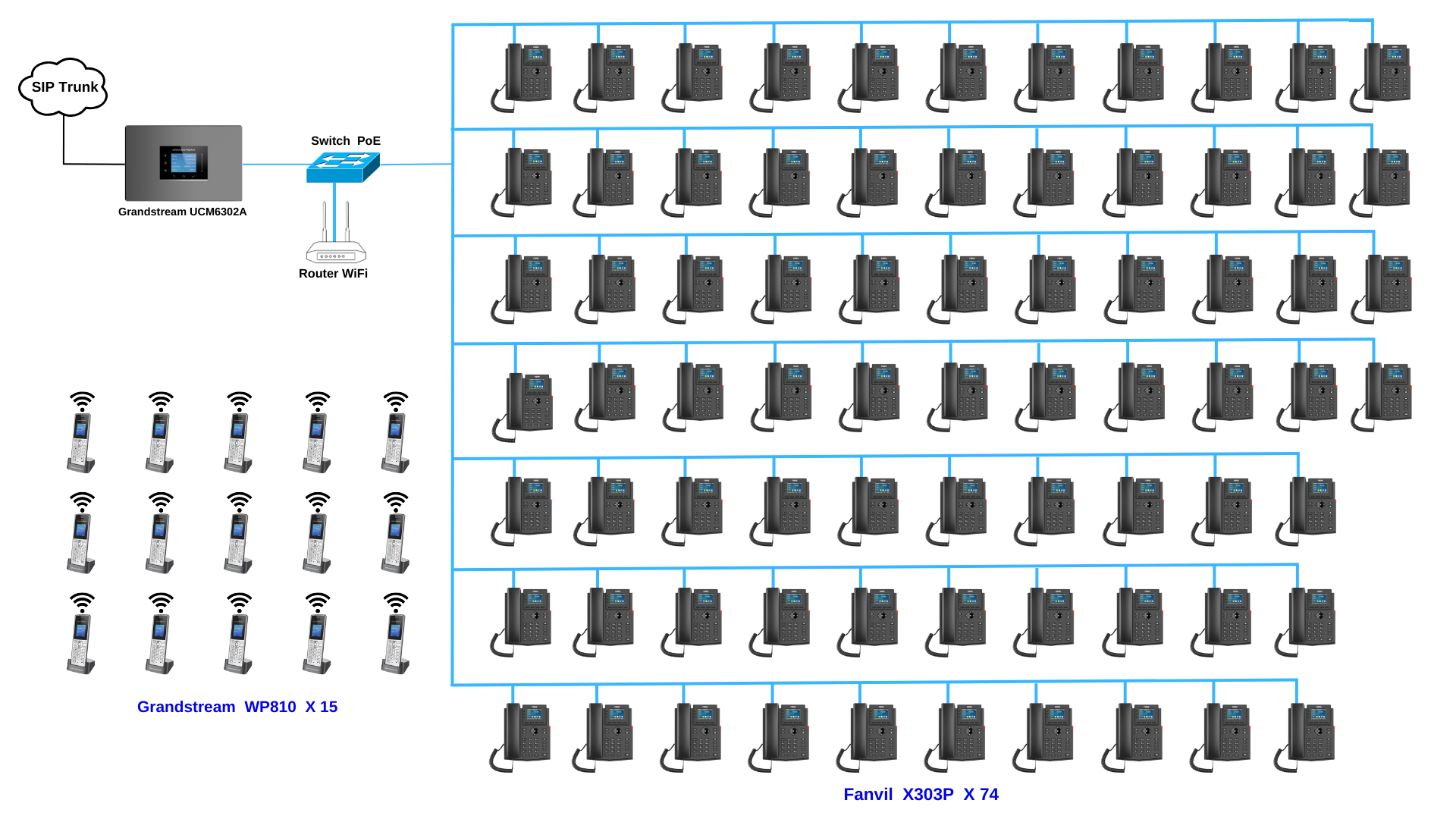 – สายในใช้ Fanvil X303P รองรับ PoE จำนวน 74 เครื่อง