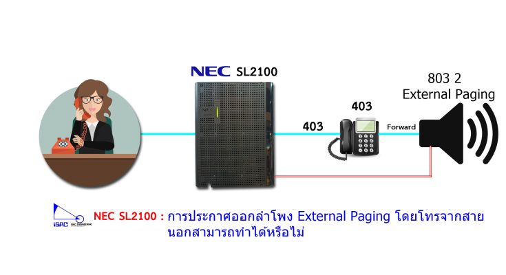 การประกาศออกลำโพง External Paging เมื่อโทรเข้าจากสายนอกกดต่อไปเบอร์ 403