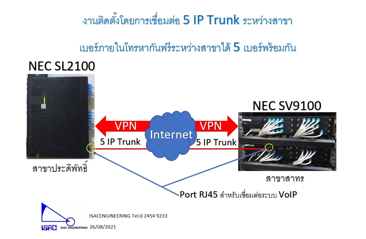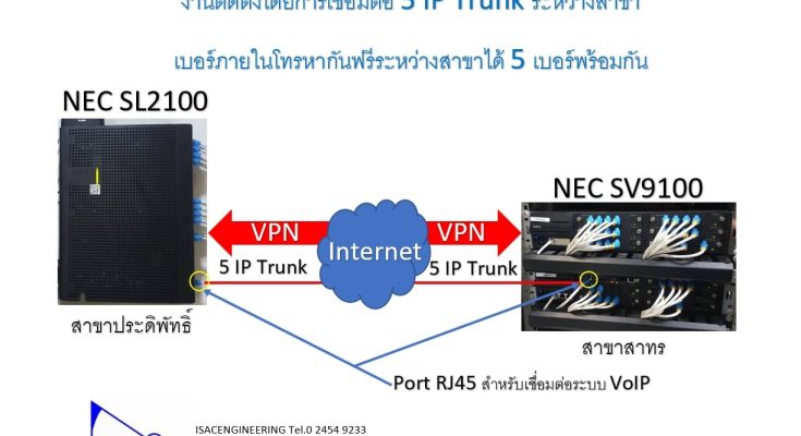 วันนี้ มีเคสงานติดตั้ง การเชื่อมต่อ IP Trunk ระหว่างสาขาโดยมี NEC SL2100 เชื่อมต่อกับ NEC SV9100 เชื่อมต่อด้วย 5 IP Trunk