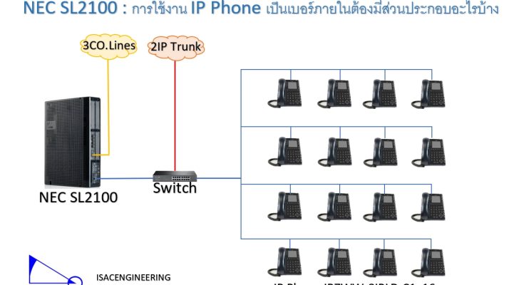 คำตอบไม่ต้องเพิ่มนะครับ จาก Diagram ถ้าเราใช้งานโทรออกพร้อมกัน และเบอร์ภายในที่เหลือโทรหากันภายใน ก็จะใช้งานสูงสุดแค่ 7 Channels ในระบบ NEC SL2100 มีระบบ VoIP มาให้ 8 Channels