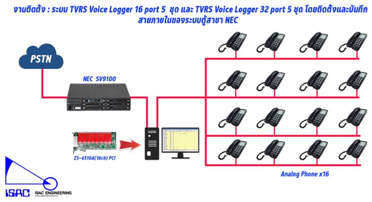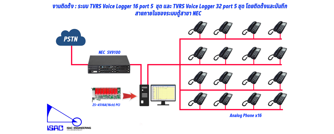 โดยเราจะทำการติดตั้งการ์ด TVRS ที่ Port PCI Express ของคอมพิวเตอร์ และ บันทึกโดยจับที่สายภายในของตู้สาขา NEC โดยกระจายไปทั้งหมด 10 อาคารด้วยกันนะครับ