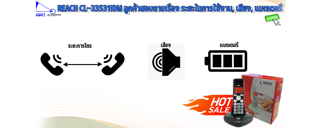 REACH CL-33531IDM ลูกค้าสอบถามเรื่อง ระยะในการใช้งาน, เสียง, แบตเตอรี่