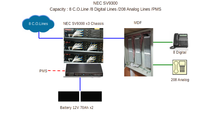 Daigram งานติดตั้งระบบตู้สาขาโทรศัพท์ NEC SV9300 : ขนาด 8 C.O.Line/8 Digital Lines /208 Analog Lines/PMS