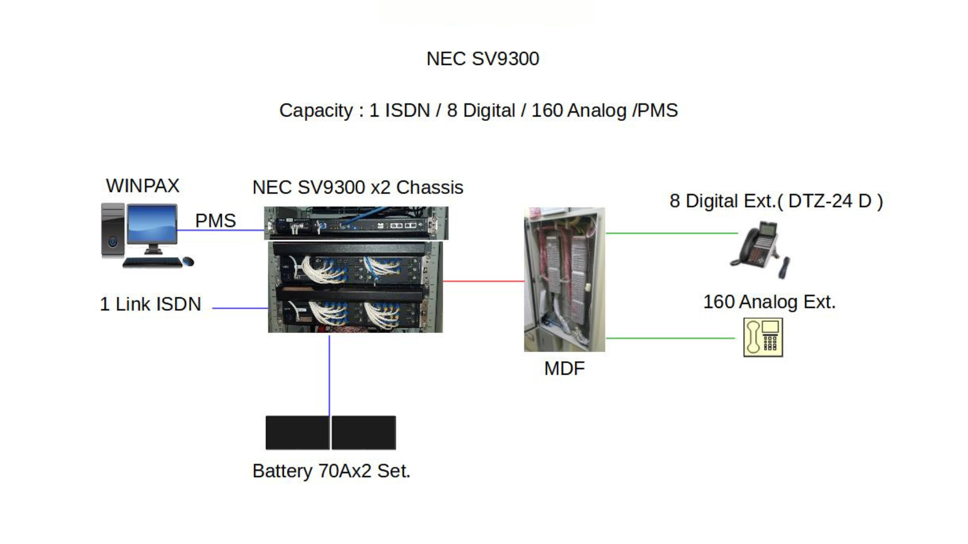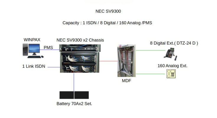 Diagram งานติดตั้งระบบตู้สาขาโทรศัพท์ NEC SV9300 : ขนาด 1 ISDN / 8 Digital / 160 Analog