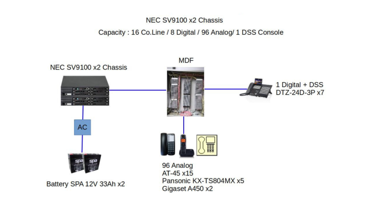 Diagram งานติดตั้งระบบตู้สาขาโทรศัพท์ NEC SV9100 : ขนาด 16 Co.Line / 8 Digital / 96 Analog/ 1 DSS Console