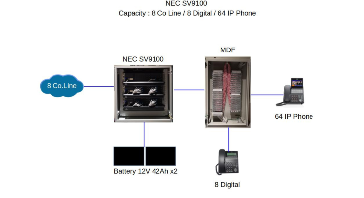Diagram  งานติดตั้งระบบตู้สาขาโทรศัพท์ NEC SV9100 : ขนาด 8 Co Line / 8 Digital / 64 IP Phone