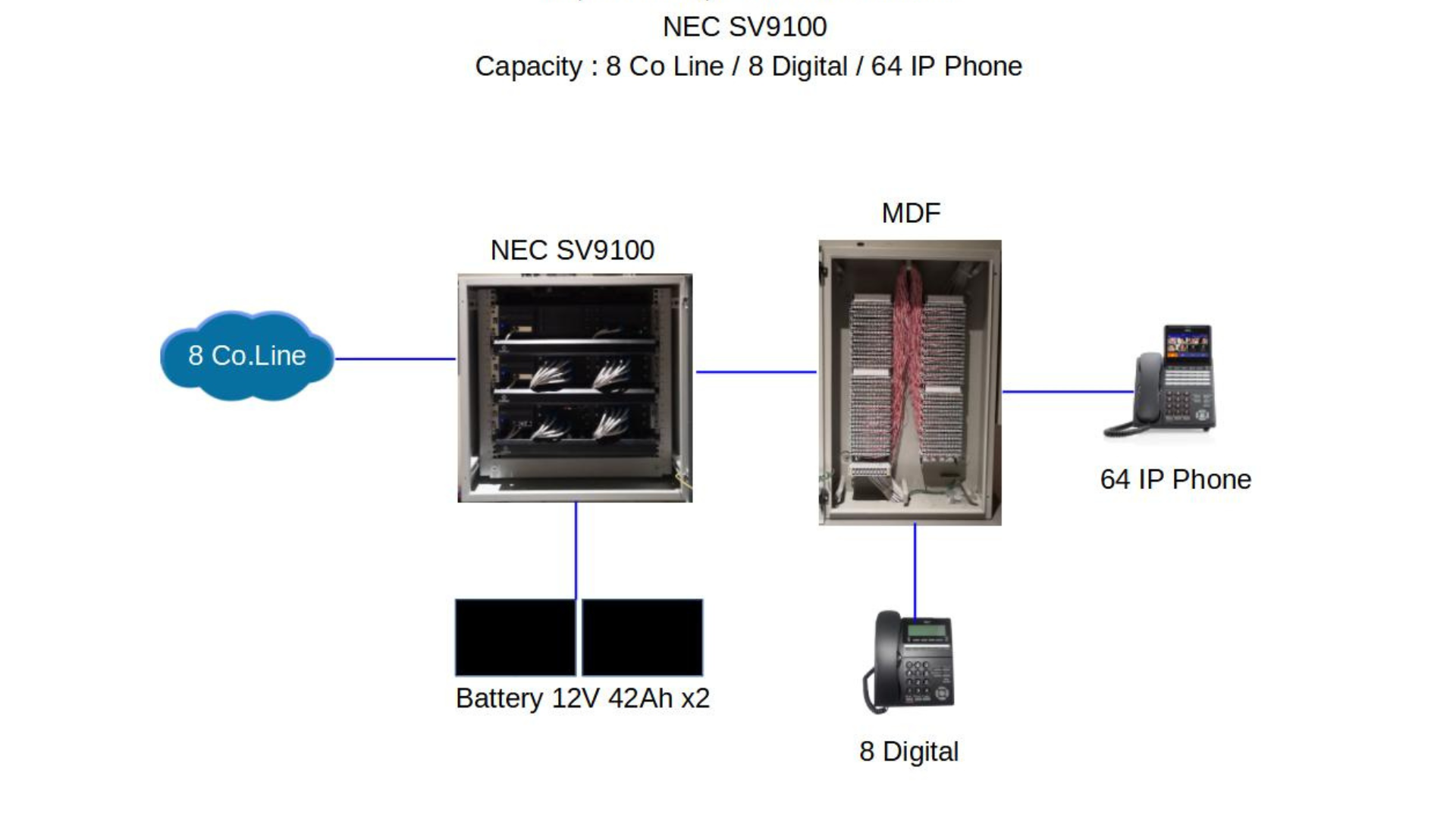 Diagram  งานติดตั้งระบบตู้สาขาโทรศัพท์ NEC SV9100 : ขนาด 8 Co Line / 8 Digital / 64 IP Phone