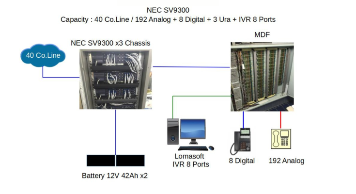 Diagram งานติดตั้งระบบตู้สาขาโทรศัพท์ NEC SV9300 : ขนาด 40 Co.Line / 192 Analog + 8 Digital + 3 Ura + IVR 8 Ports