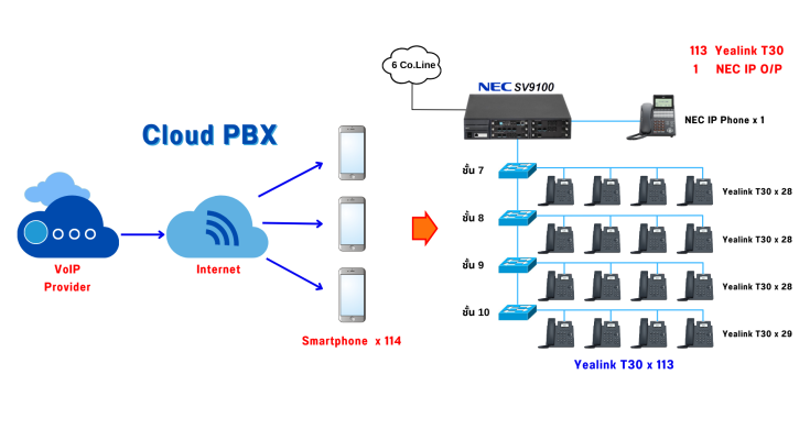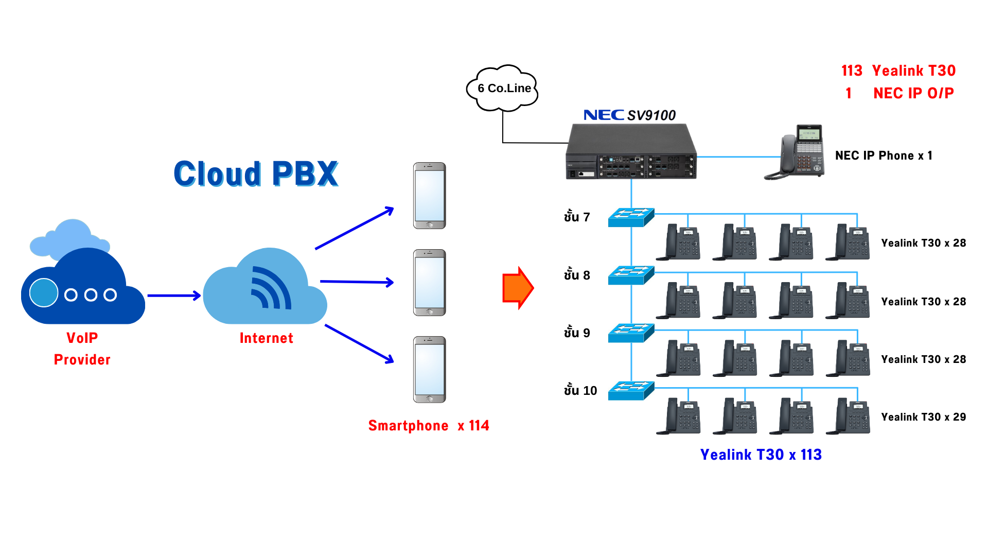 ***เปลี่ยนระบบการใช้งาน Cloud แบบเดิมที่ใช้งานอยู่เป็น NEC SV9100    รองรับทั้งระบบ Analog เดิมและ ระบบ IP