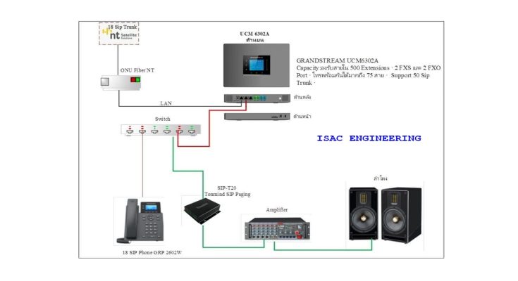 บริษัท ไอแซค เอ็นจิเนียริ่ง จำกัด ได้ดำเนินการติดตั้งระบบ IP PBX ให้กับโรงงานในจังหวัดระยอง โดยความต้องการของลูกค้าคือการใช้งานโทรศัพท์ WiFi Phone และระบบประกาศเสียงผ่านลำโพง เสียงตามสาย ทางบริษัทได้ออกแบบและติดตั้งระบบให้ตอบโจทย์ความต้องการดังกล่าวด้วยอุปกรณ์ที่มีประสิทธิภาพสูง