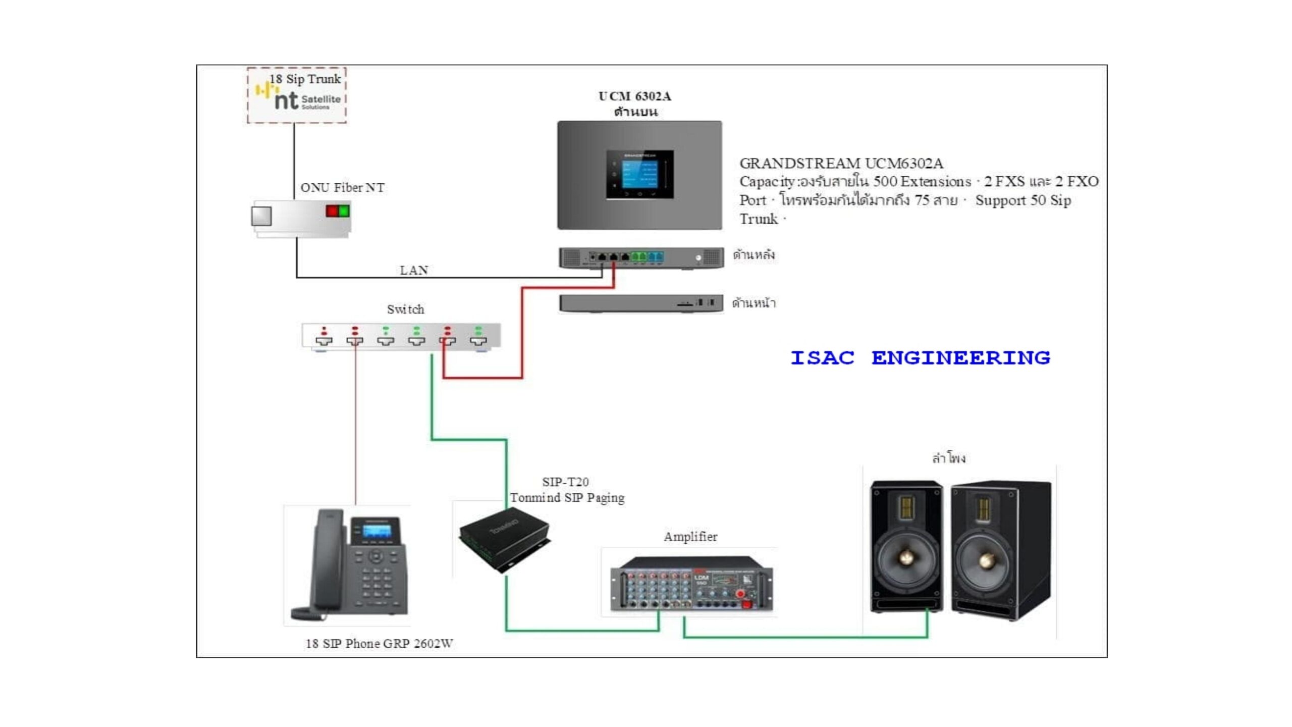 - SIP Paging รุ่น SIP-T20 สำหรับการประกาศเสียงออกลำโพง