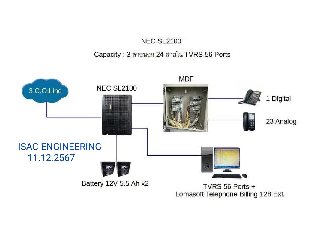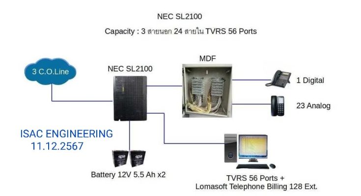 Capacity IP PBX NEC SL2100 ที่ลูกค้าใช้งาน : 3 สายนอก / 24 สายใน / TVRS 56 Ports